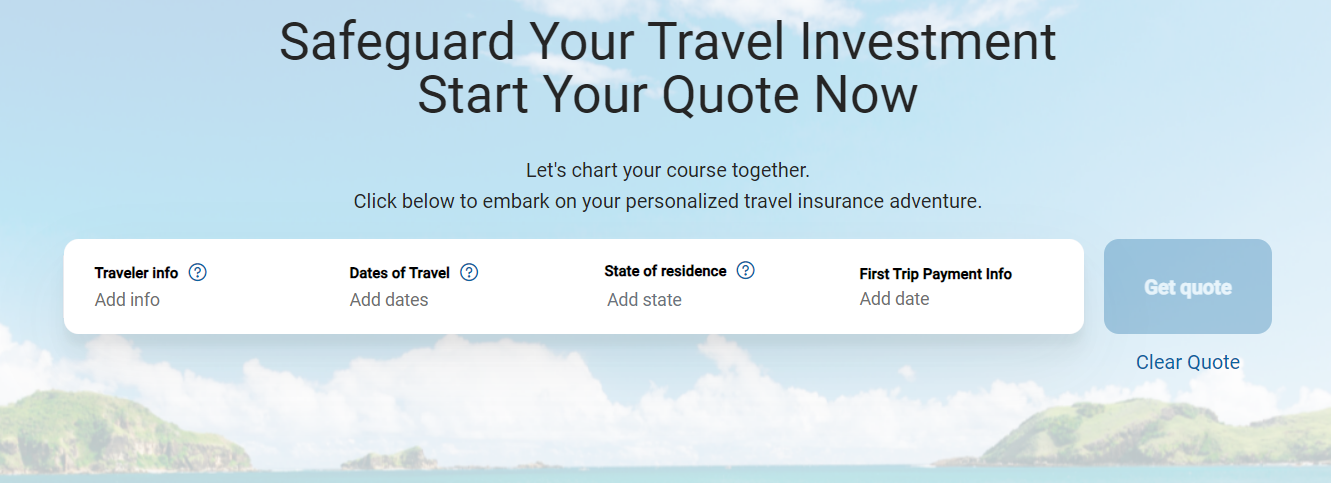 Before we can start a conversation, we need to get some information from you about your upcoming trip. Please fill out the form below and receive a customized quote for travel insurance within 24 hours