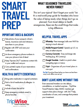 Enroll in STEP. Review the Smart Travel Prep list. Get insured. It’s not just smart—it’s essential.